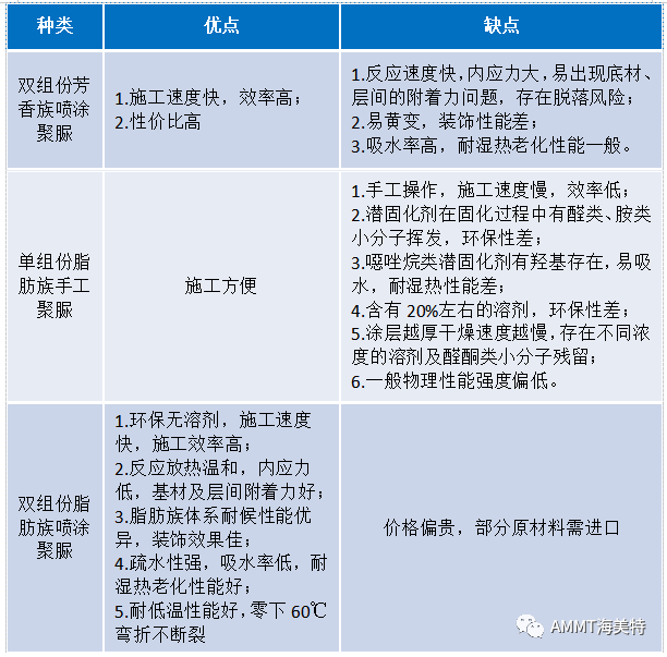 三類聚脲材料優(yōu)缺點(diǎn)對(duì)比表